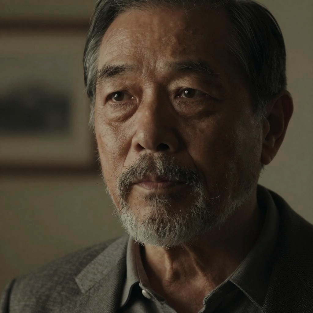 Old Man From Movie, a close up of a man with a beard and a shirt