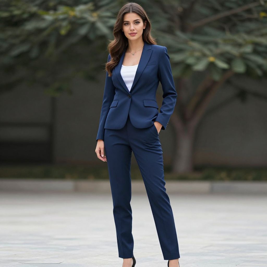 "Western Semi Formal Female, woman in a white shirt and orange pants posing for a picture"
