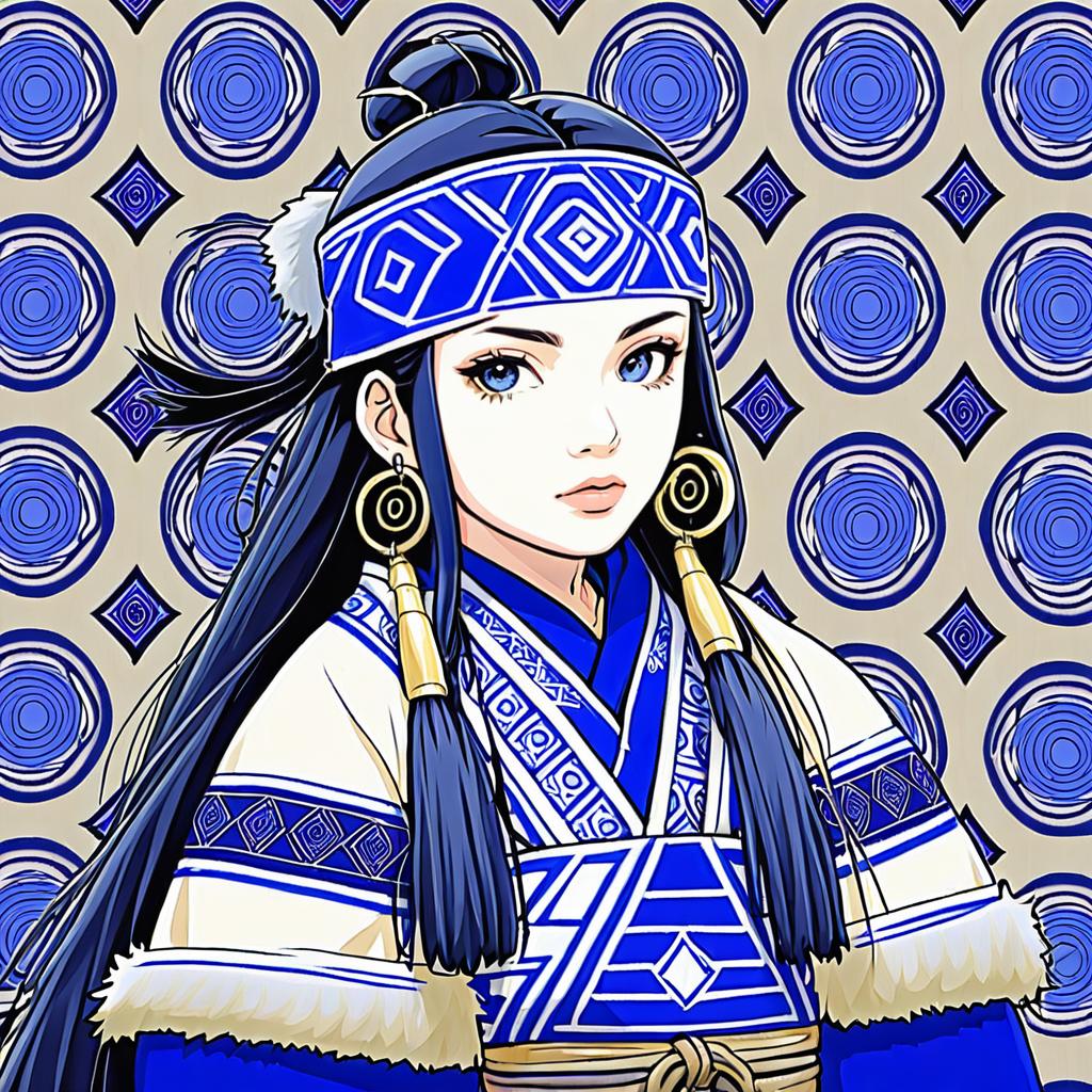 Illustration of Asirpa, golden kamuy in the style of Ishihara masumi
