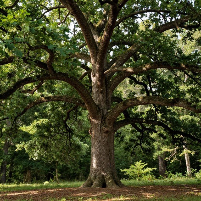 Mature Oak Tree in Forest Clearing