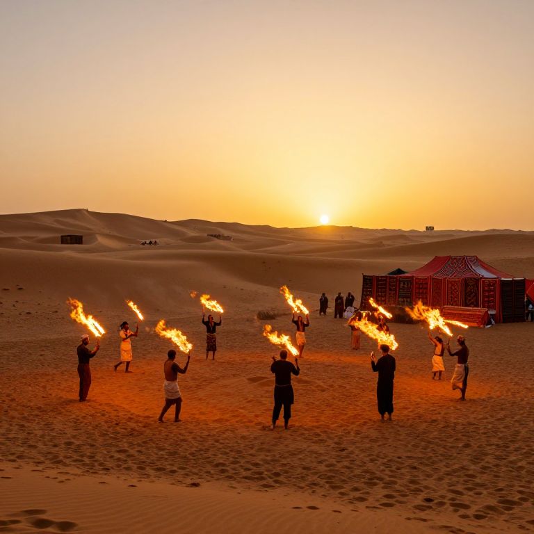 Jubilee prompt: A jubilee festival in a desert oasis at sunset, with sand dunes, traditional music, fire dancers, and vibrant textiles, warm golden hues, immersive atmosphere, dynamic composition, wide-angle shot.