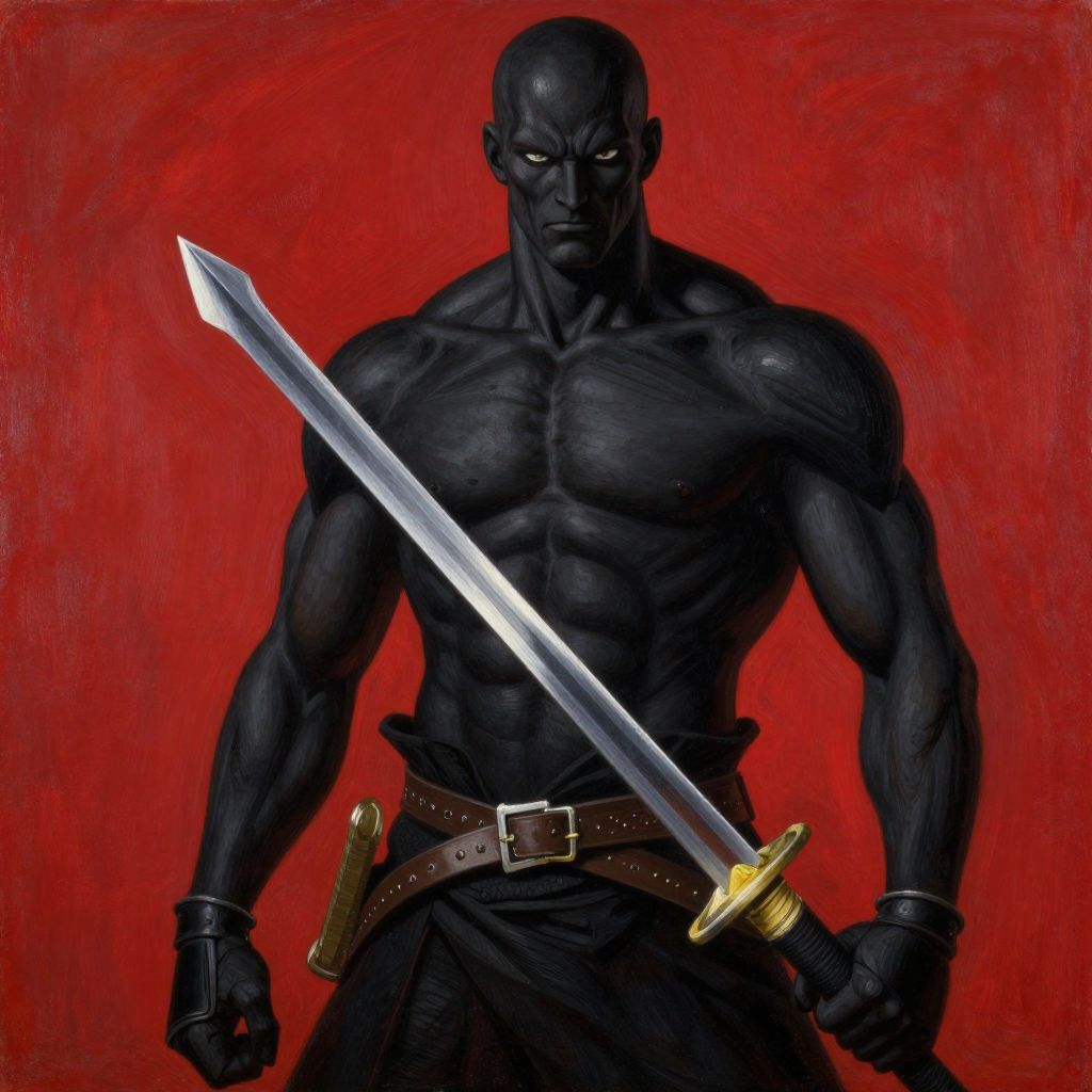 The black swordsman guts from berserk painted by francisco de goya, kentaro miura style, red background, oil painting, romanticism painting, highly detailed, 4 k