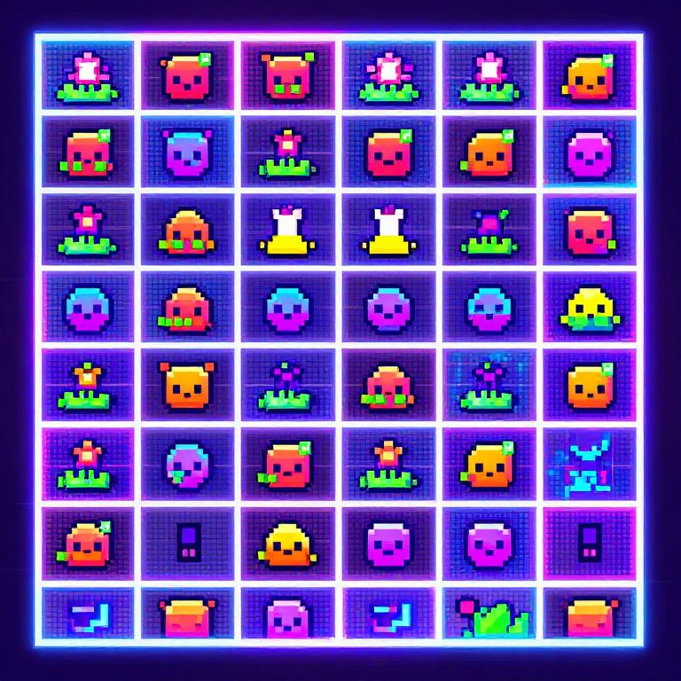 Png to sprite transformation concept art, vibrant pixel art style showcasing a PNG image seamlessly converting into a retro game sprite on a glowing digital grid, bright neon colors, detailed pixel texture and dynamic lighting effects