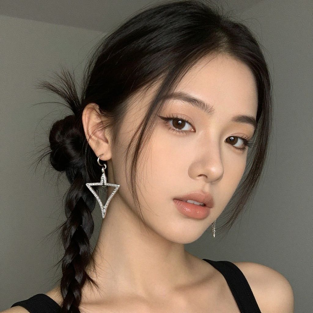 "encanto costume adult, 1girl, solo, earrings, jewelry, braid, realistic, looking at viewer, upper body, hair bun, lips Realistic photo of casual sexy person with pretty face"