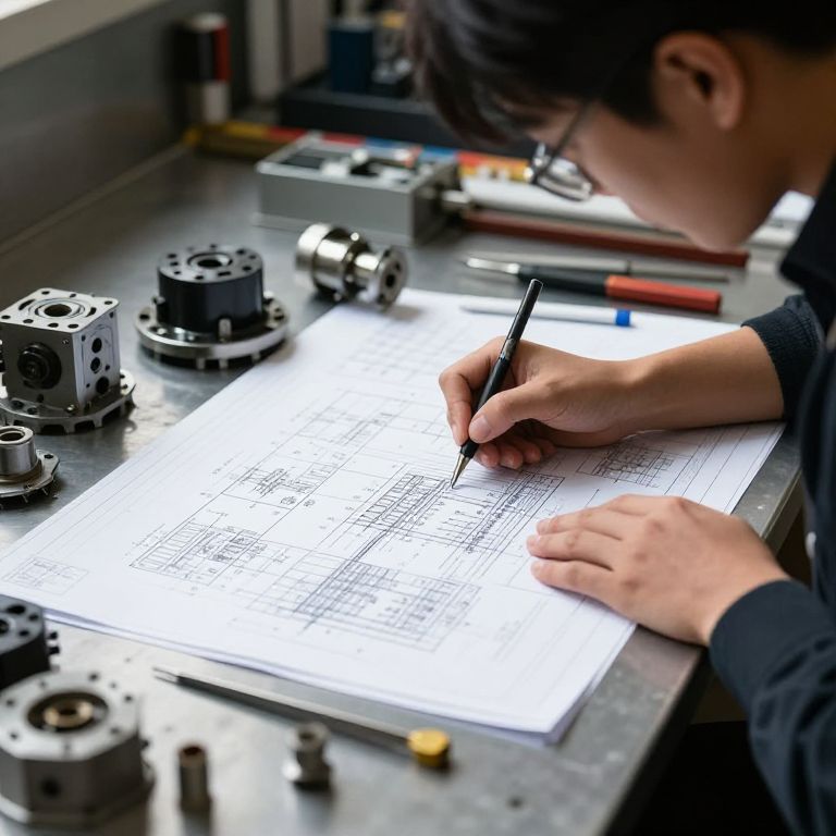 Engineer Drafting Intricate Mechanical Blueprints