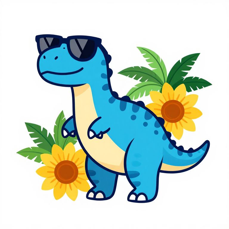 Chart happy t-rex with ray ban, 50s vibes, venice beach, 8k ultra realistic, bookeh, summer, pink and light blue,