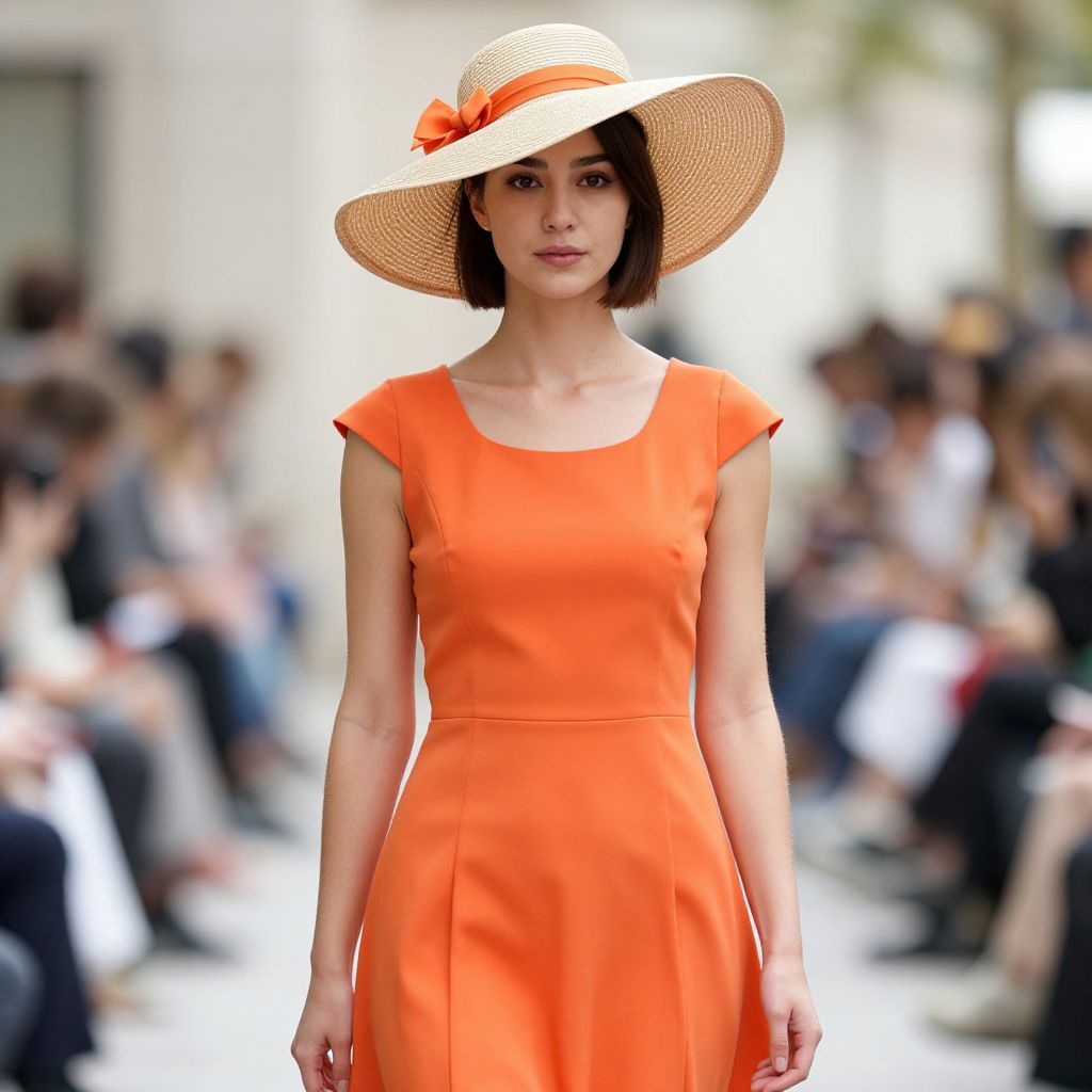 "Woman Decent Outfit Dress, woman in a dress and hat standing in a room with other people"