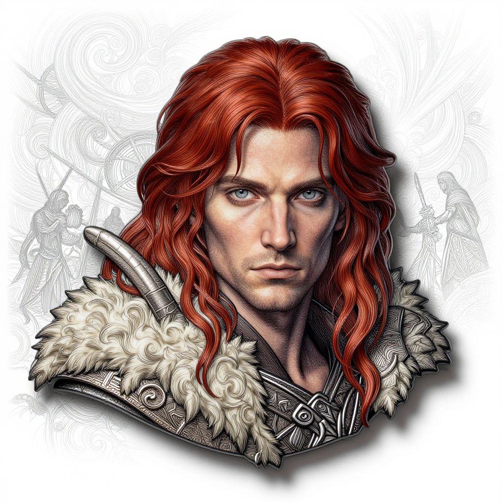 Line art trinket depicting a He was a shepherd with reddish hair and gray eyes, unaware of his pivotal role in the battle between light and shadow in the world of the Wheel of Time. Anton Otto Fischer, natural, shimmering, vibrant, gothic, rpg, 1400ad, ultra detailed, detailed, immersive, reminiscent of high fantasy RPG games, HD, masterpiece, best quality, hyper detailed, super realistic, perfect face, perfect hands, award-winning, professional, breathtaking, linquiveraworthless Archipelagomagic weatherzentangle . intricate, abstract, monochrome, patterns, meditative, highly detailed