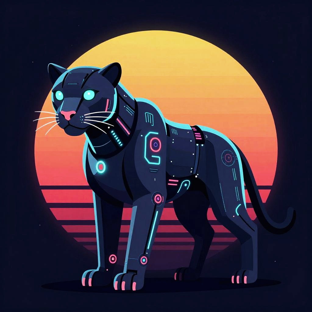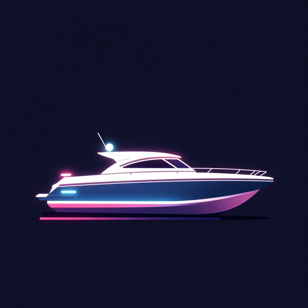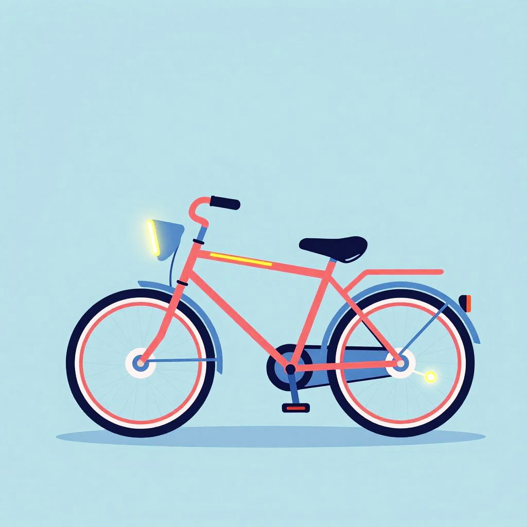 Minimalist vector illustration of a sleek flying motorbike, glowing neon lights, electric blue and hot pink colors, inspired by classic retro-futuristic designs.