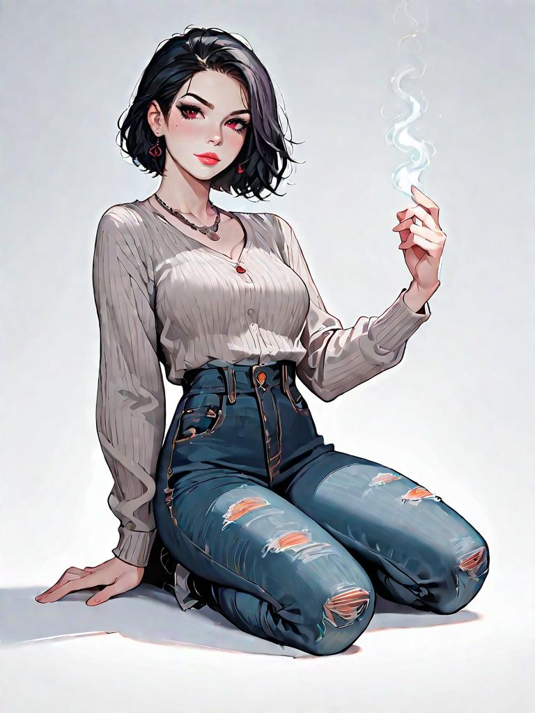 Realistic Comic-Style Woman in Casual Outfit