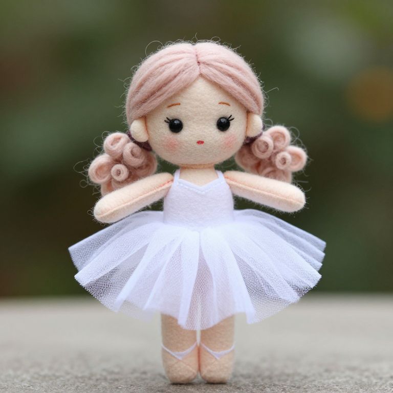 Handmade ballerina doll with blush felt hair white tulle por blita