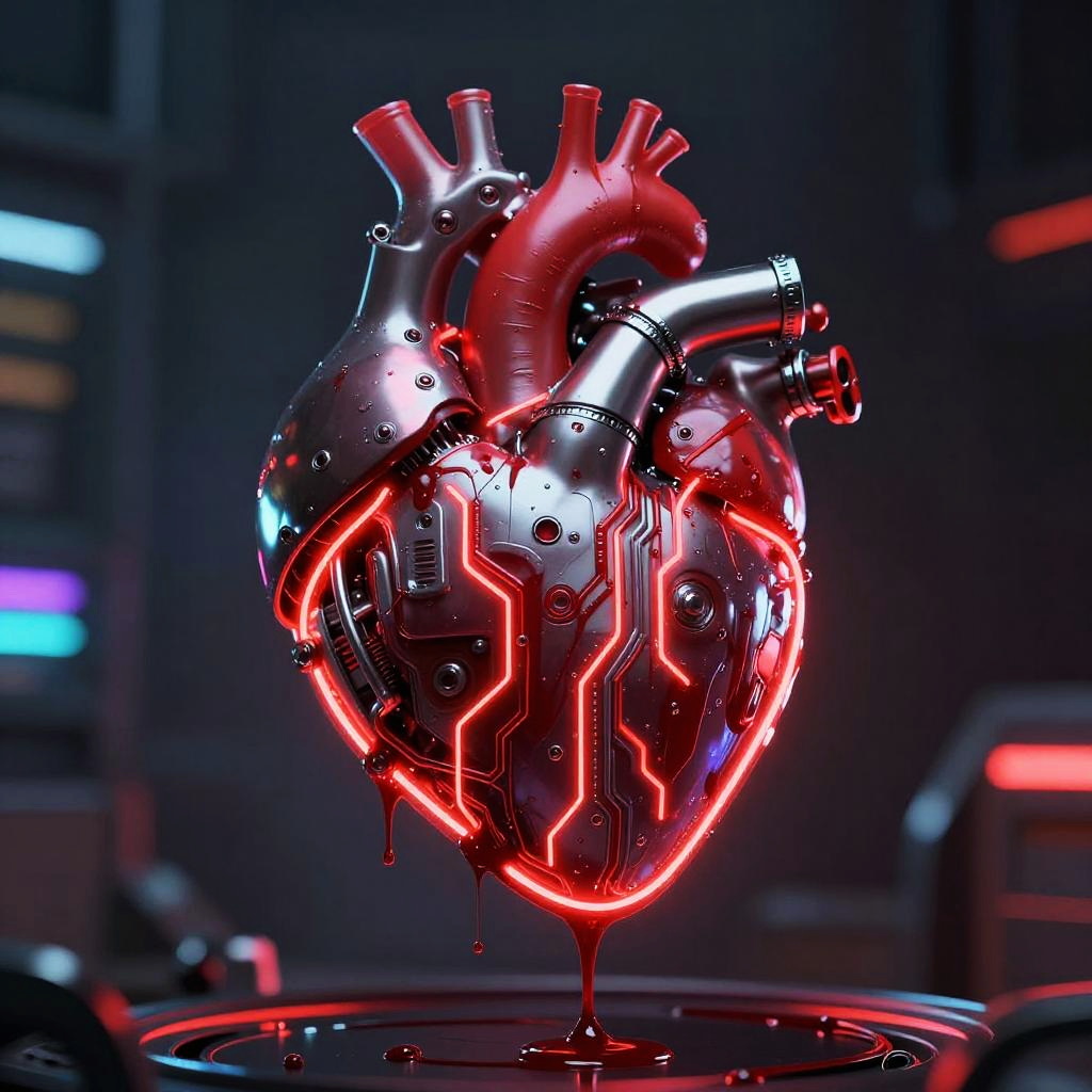 Cyberpunk Mechanical Heart with Neon Blood