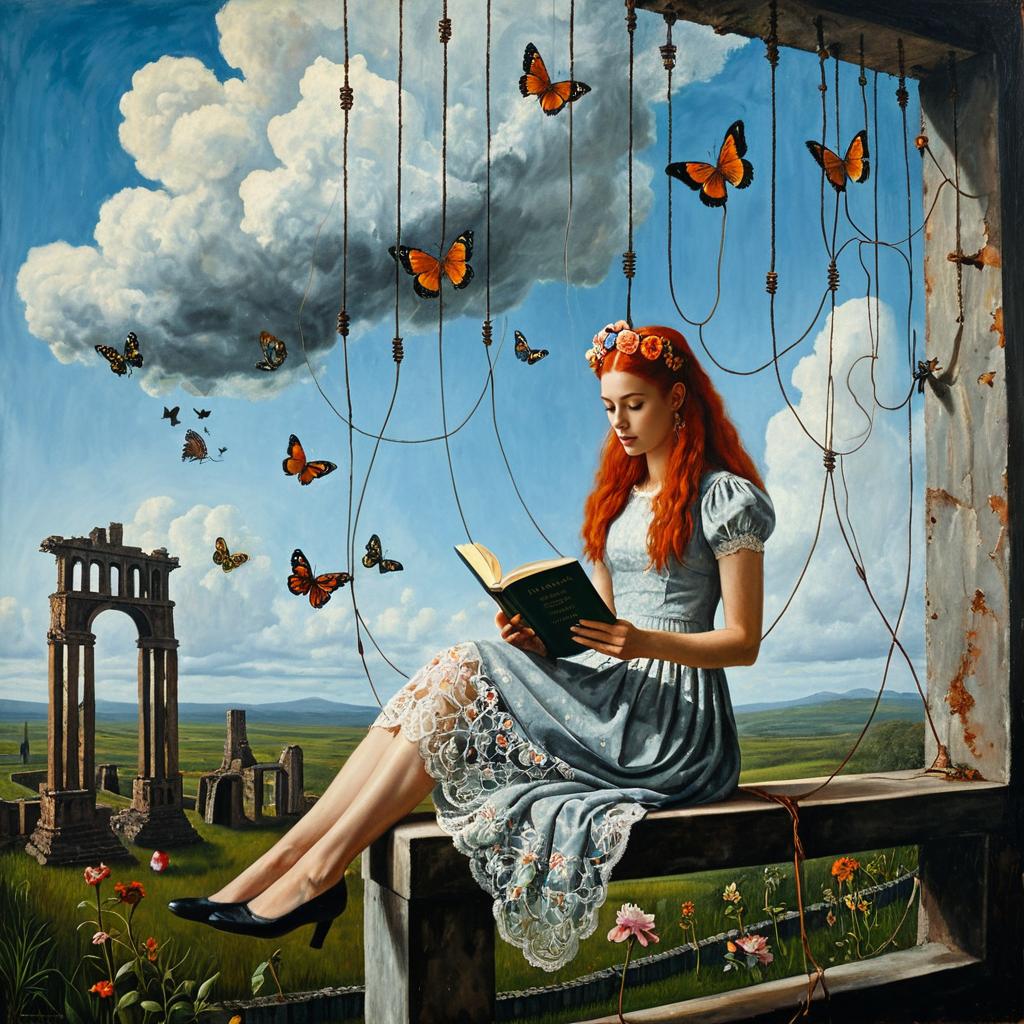 Surreal Redhead Reading Among Clouds