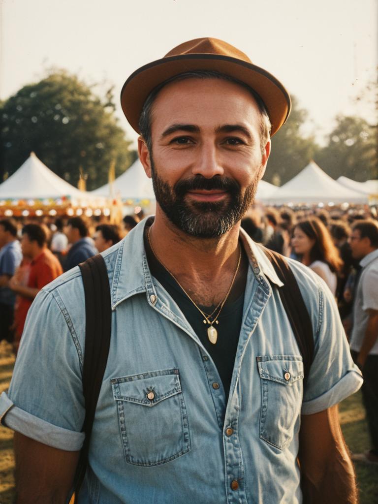 Man in Summer Casual Costume, summer festival portrait, photorealistic realism --sref 1390