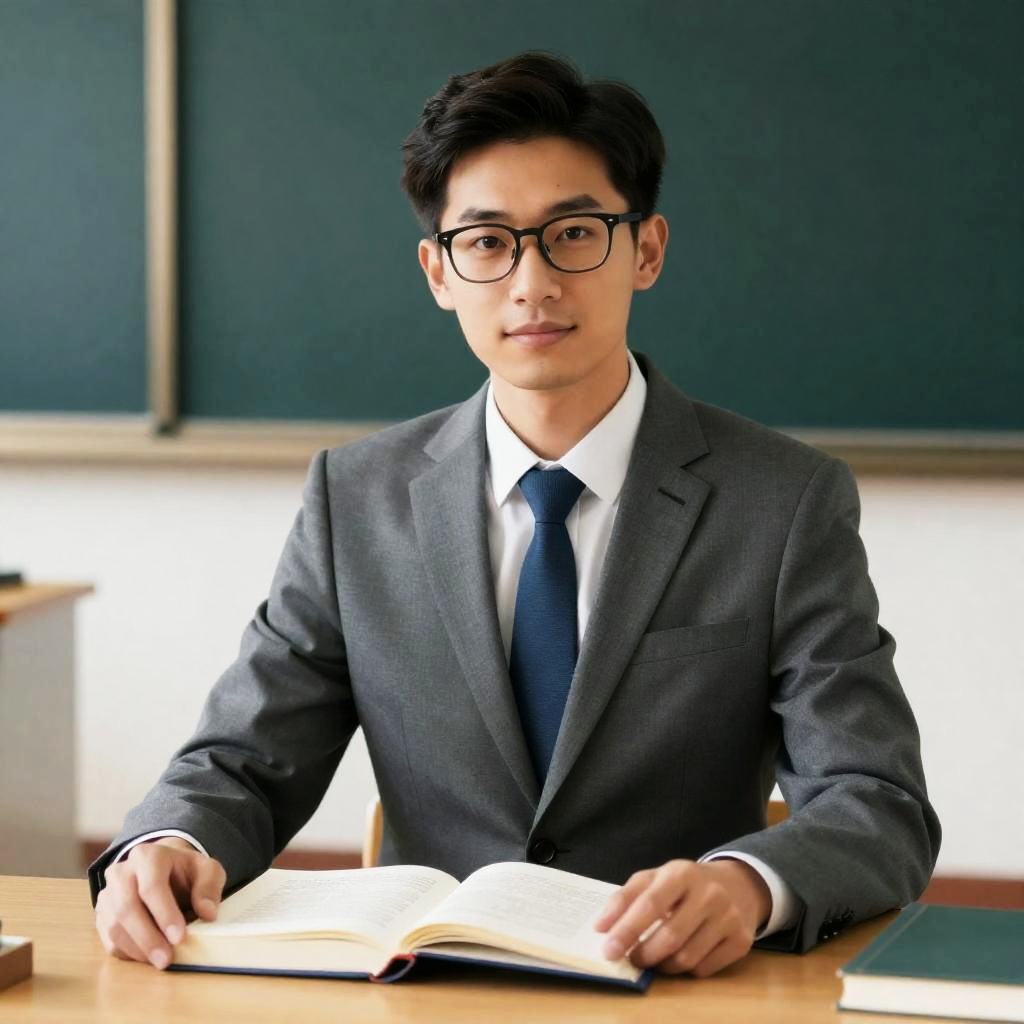 Book Character Costume Male Teachers, man in a suit and tie sitting at a table with a book
