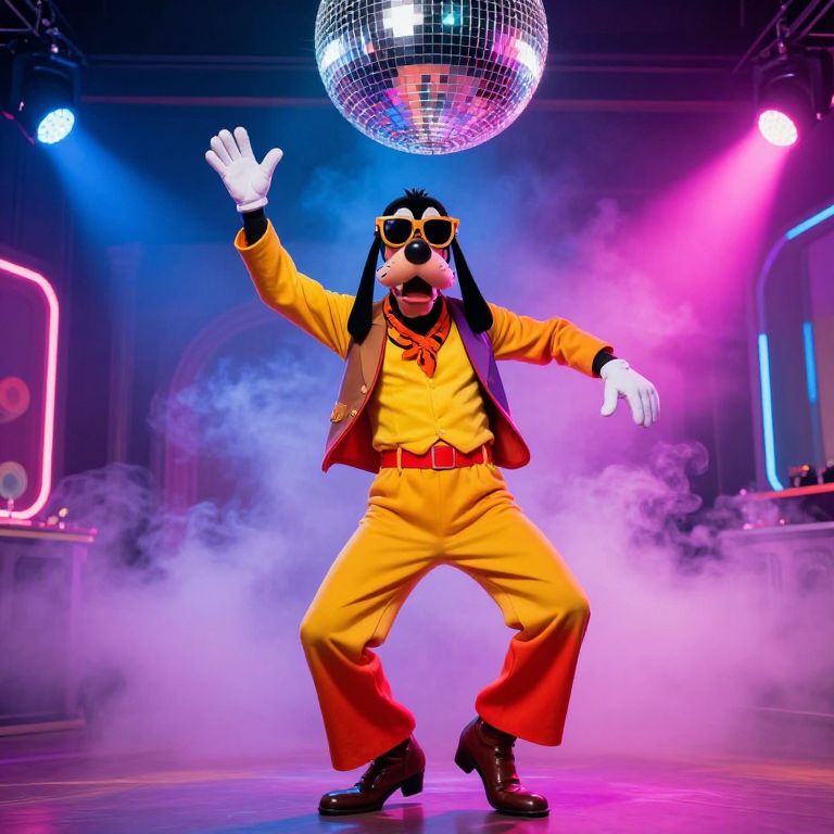 Goofy ahh pictures uncle caught mid-dance in a retro disco setting, funky seventies attire with oversized sunglasses, shining disco ball overhead, vivid neon lights and smoke effects, energetic and humorous vibe, exaggerated dance moves