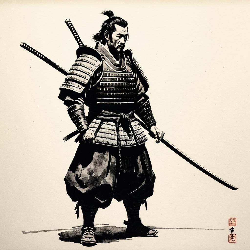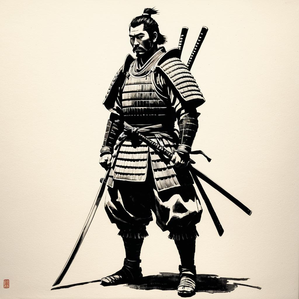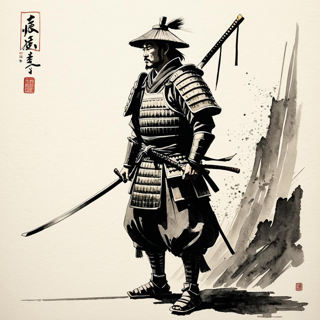 Minimalist Ink Wash Painting of Samurai