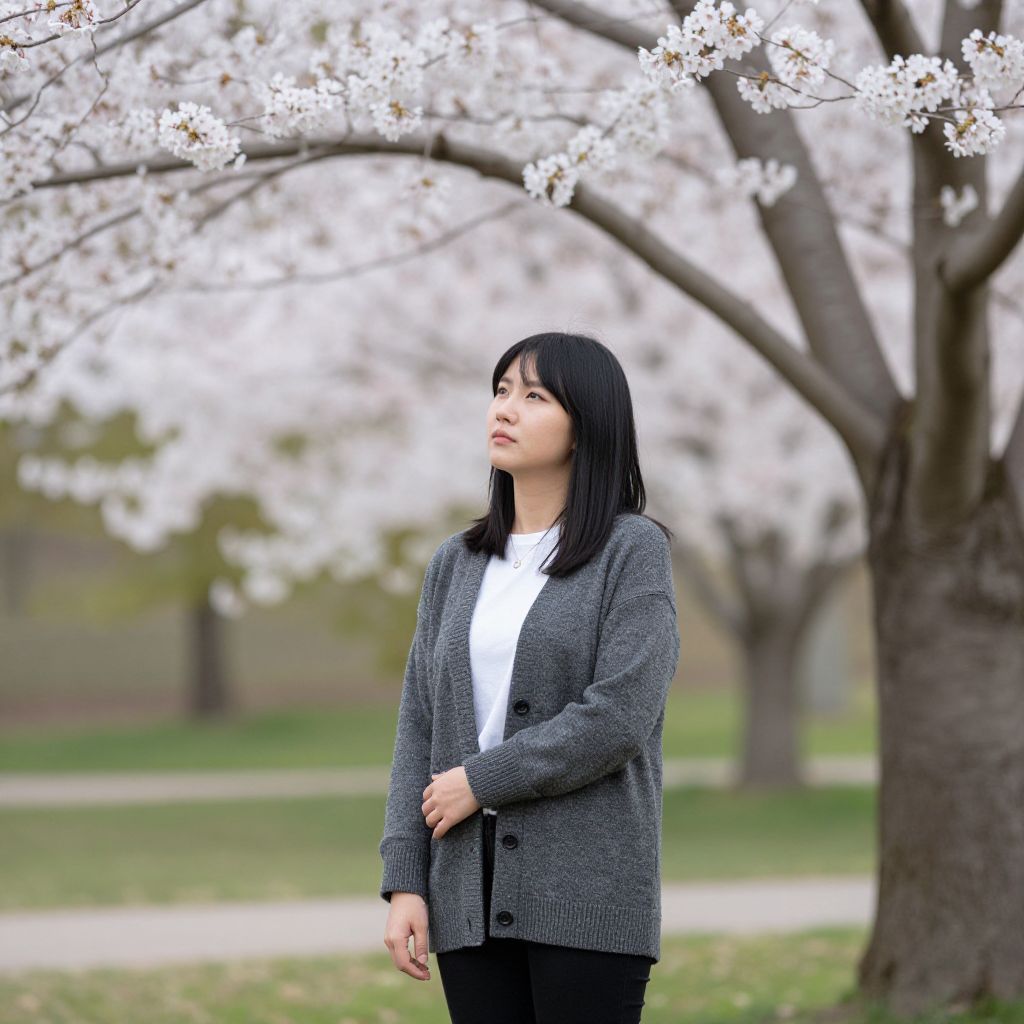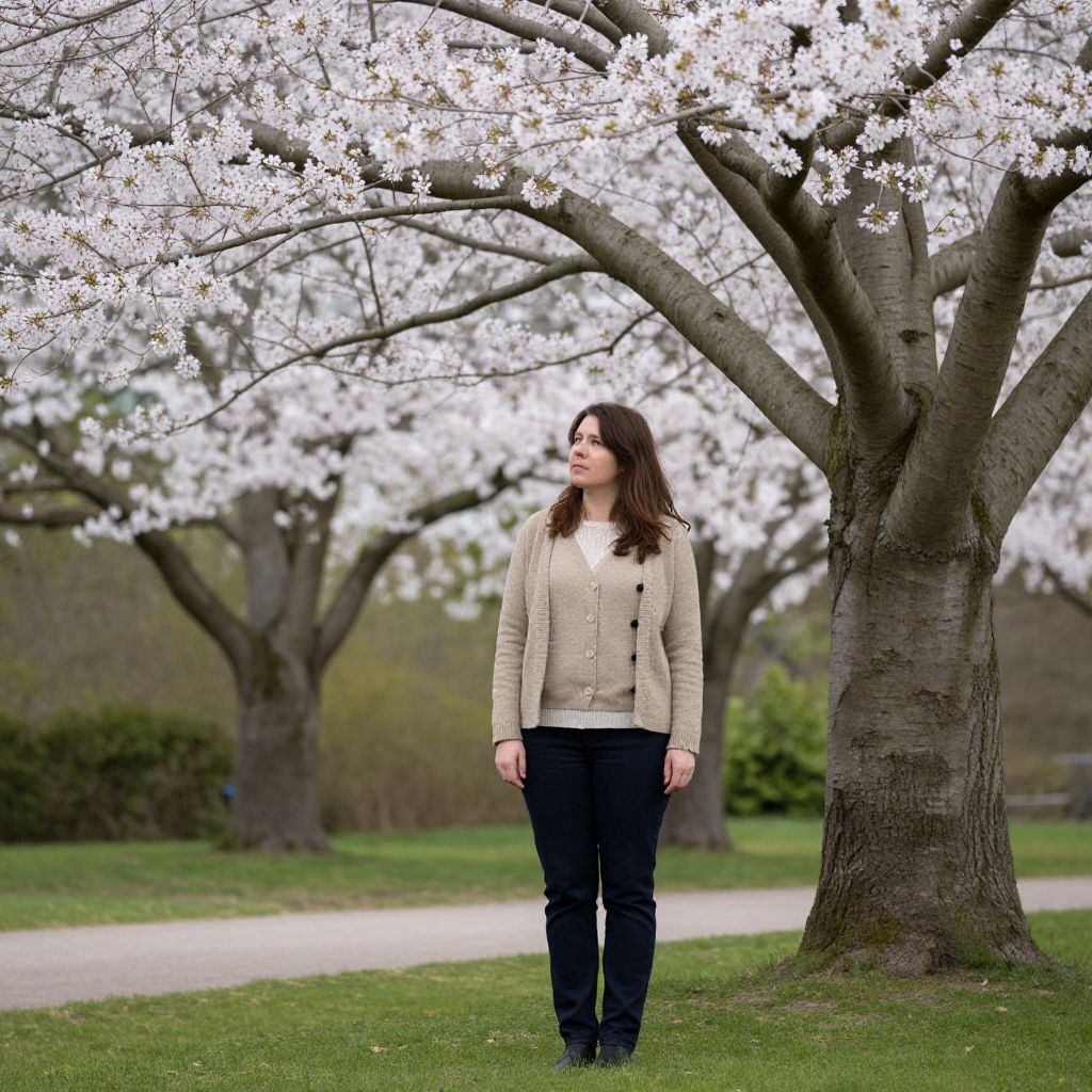 Thoughtful Woman by Cherry Tree