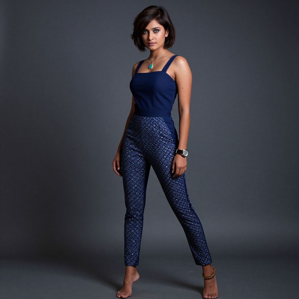 Photorealistic Indian Woman in Indigo Jumpsuit