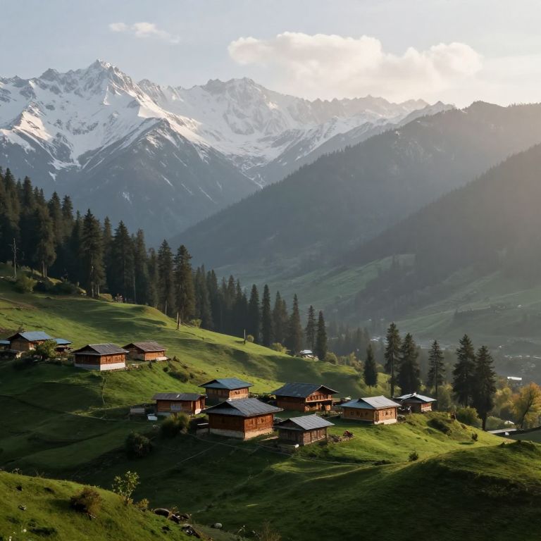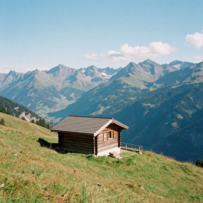 Marbled /imagine prompt a rustic chalet:: in an alpine valley:: majestic snow covered mountains in the background,