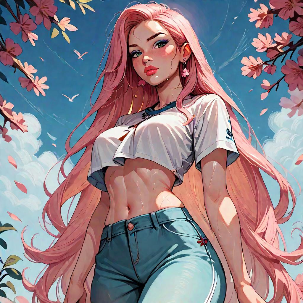 Confident Anime Woman in Spandex