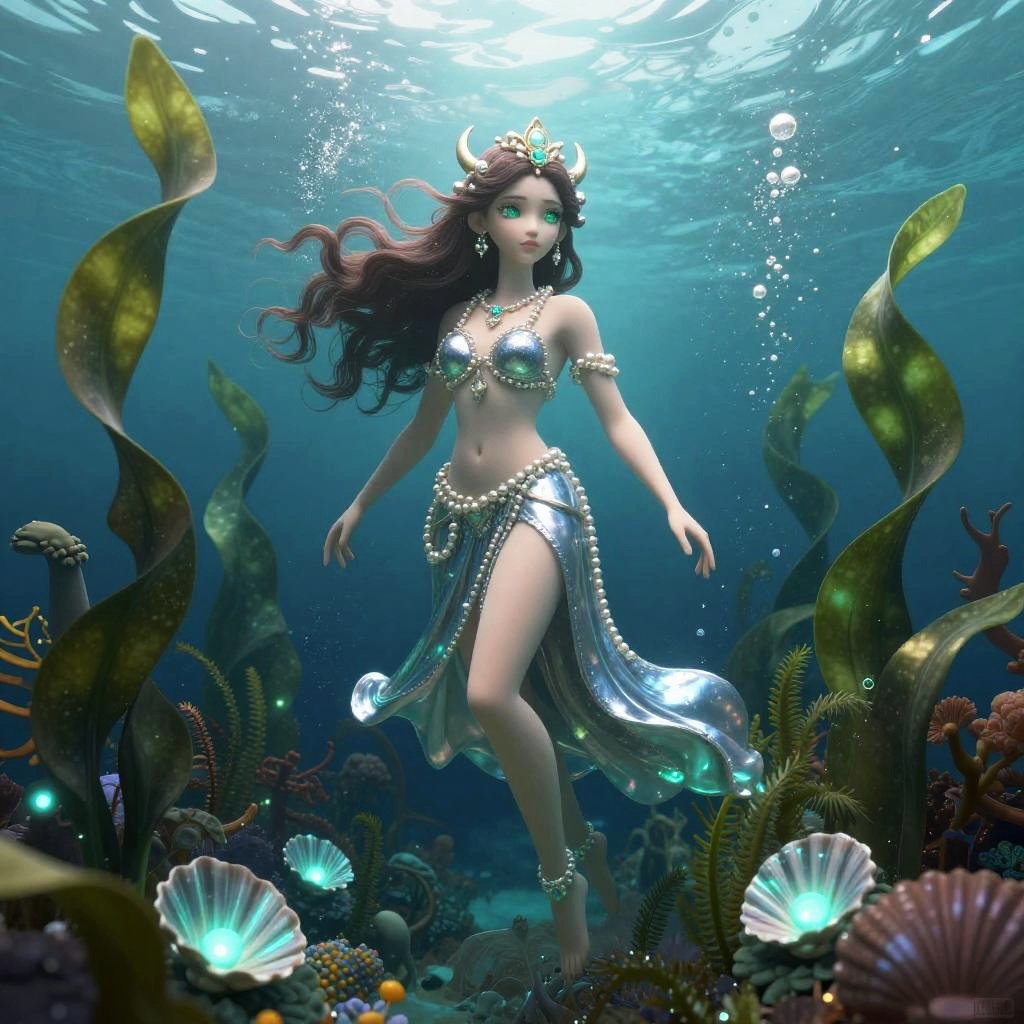 Space archaeologist, 3D render style, surrounded by alien artifacts and holograms, icy blue and silver, wearing utility belt, inquisitive, crouching, thoughtful.