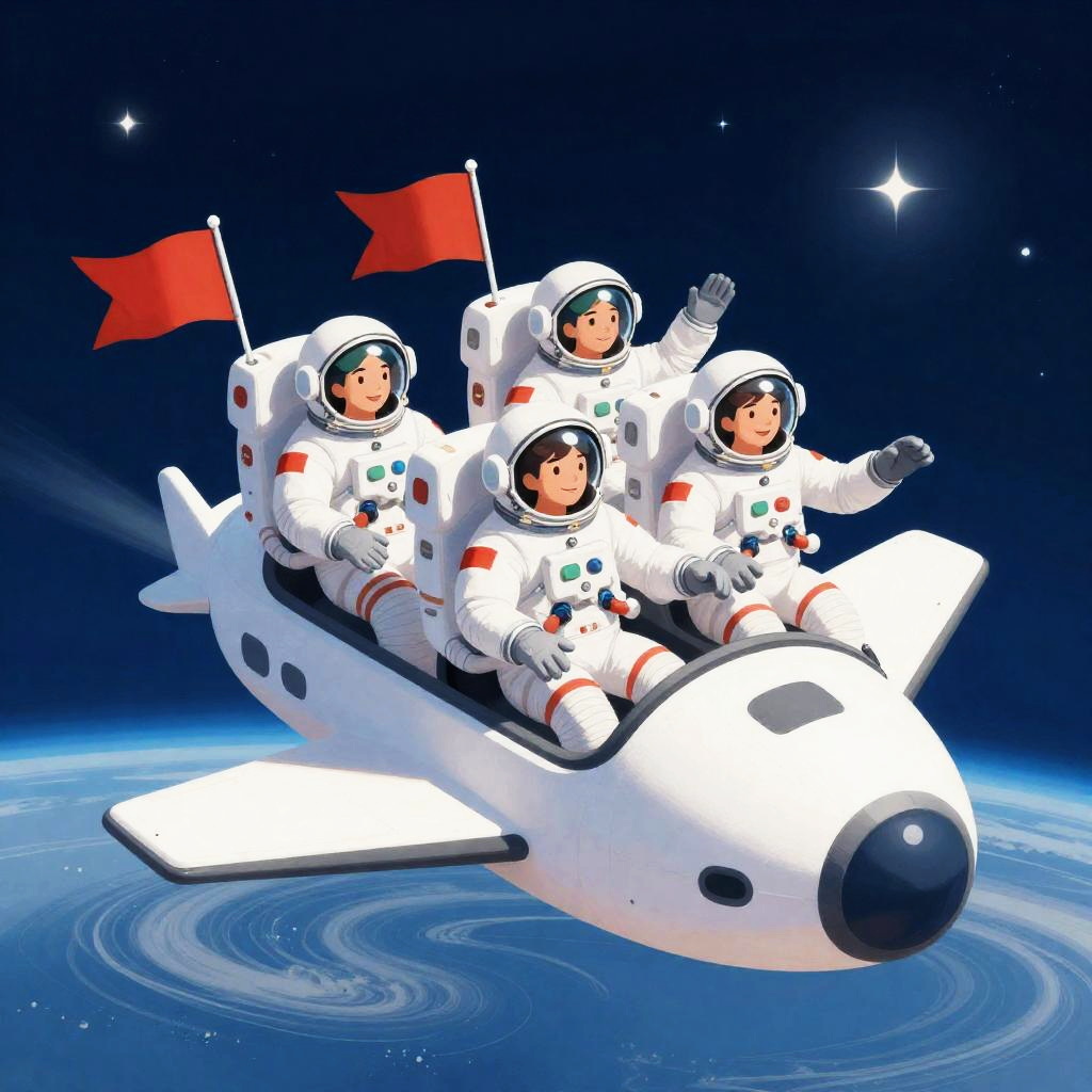 Astronauts Joyfully Riding a Spacecraft