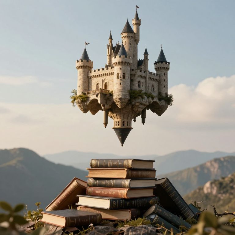 Craft an image depicting a majestic floating library suspended in a boundless azure sky, instilling feelings of awe and intrigue. The architectural wonder showcases melting, geometric forms reminiscent of surrealistic designs, with each tier dedicated to different literary realms - fantasy on the first floor, science fiction on the second, and historical narratives on the third. Ornate gold patterns, akin to those found in Art Nouveau masterpieces, adorn the exterior, glistening under the sun's rays that cast dramatic shadows across this surreal edifice. As visitors traverse the labyrinthine passageways, they encounter exquisitely crafted stained-glass windows depicting scenes from cherished literary works, each pane emanating a gentle radiance, creating an enchanting and serene ambiance within this celestial sanctuary of knowledge and imagination.