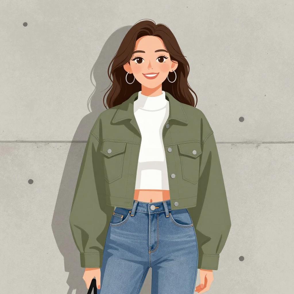 Chic Woman in Olive Green Outfit