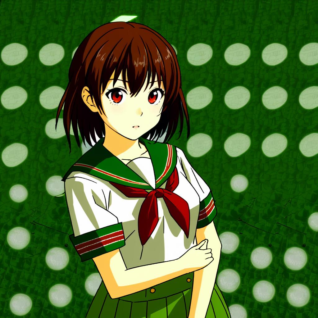 Mutsuki kai ni (kancolle), kantai collection, 1girl, red eyes, brown eyes, short hair, brown hair, gradient hair, red hair, serafuku, serafuku, green skirt, pleated skirt, green sailor collar, crescent pin, red neckerchief, by artist g (genesis1556), anime