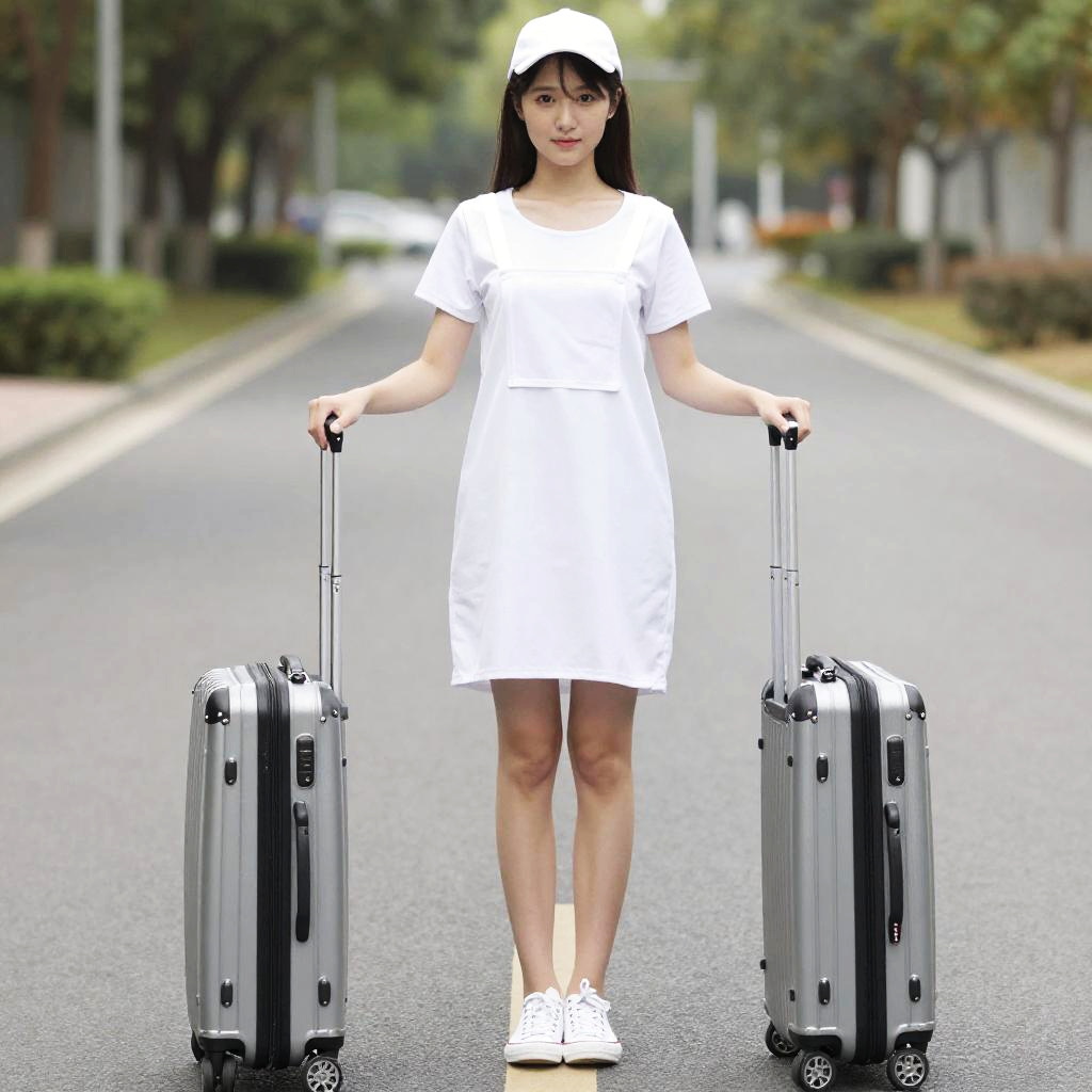 Woman in Summer Dress with Suitcase