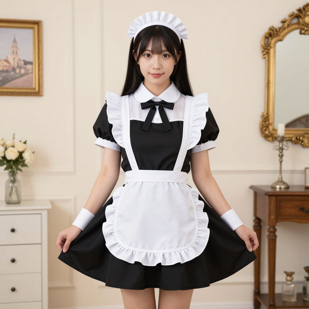 Fancy Maid Costume, dressed in a maid costume standing in a room