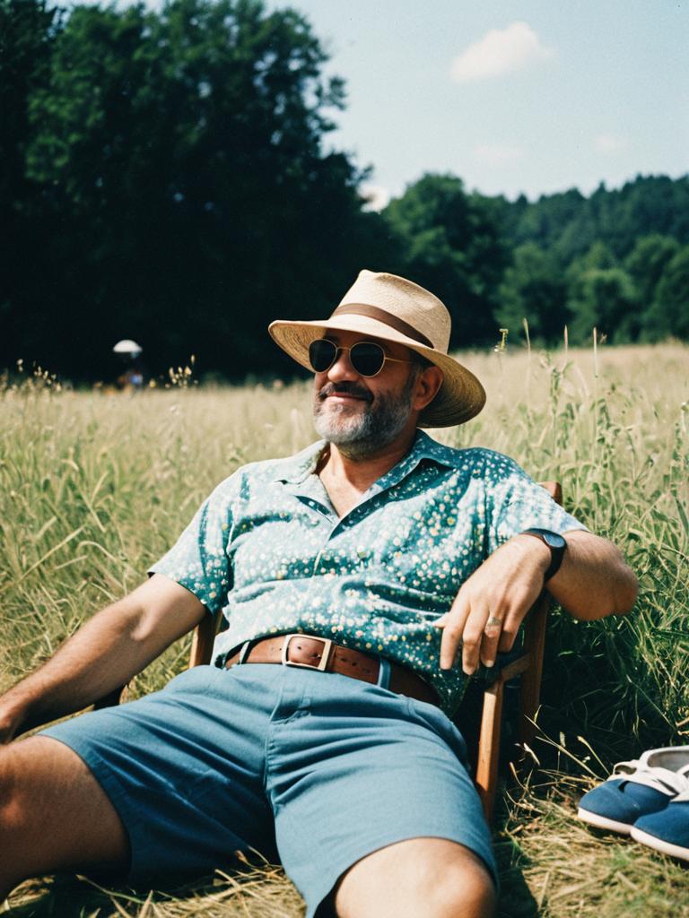 Man in Summer Casual Costume, cinematic realism, relaxed editorial photo
