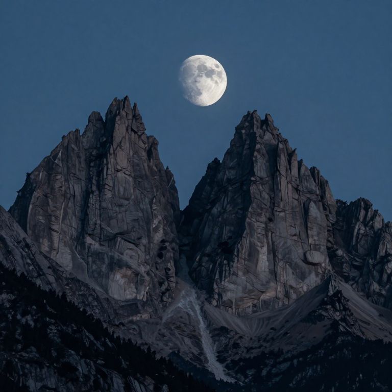 Under the watchful gaze of the moon, the mountains stand as silent sentinels, their jagged peaks cradling an ancient, unspoken secret—a realm where serenity meets the whispers of forgotten dreams.