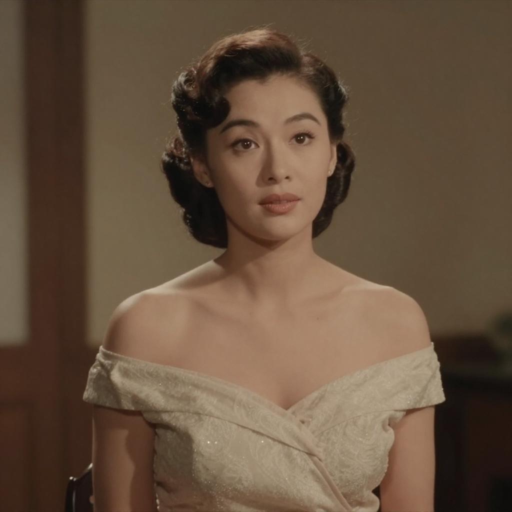 A woman with a natural, elegant appearance is captured in a warm, cinematic style reminiscent of classic film photography. Her off-shoulder dress and soft curls add to the nostalgic and timeless feel of the image. The ambient lighting enhances the overall mood, highlighting her poised and graceful demeanor.