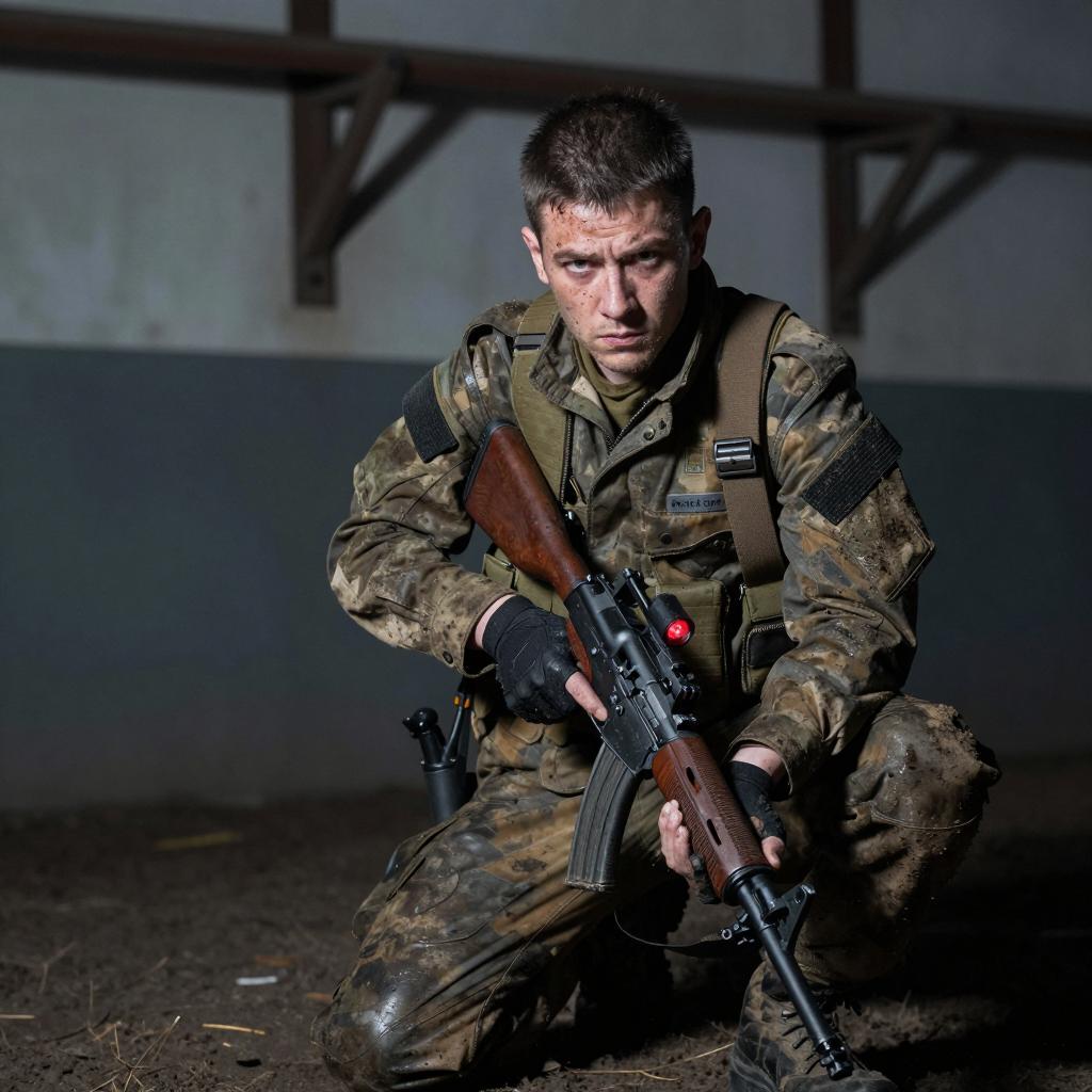 Male Soldier in Green Helmet and Uniform
