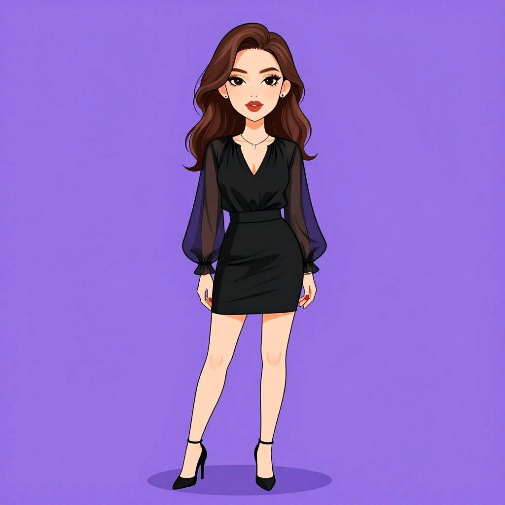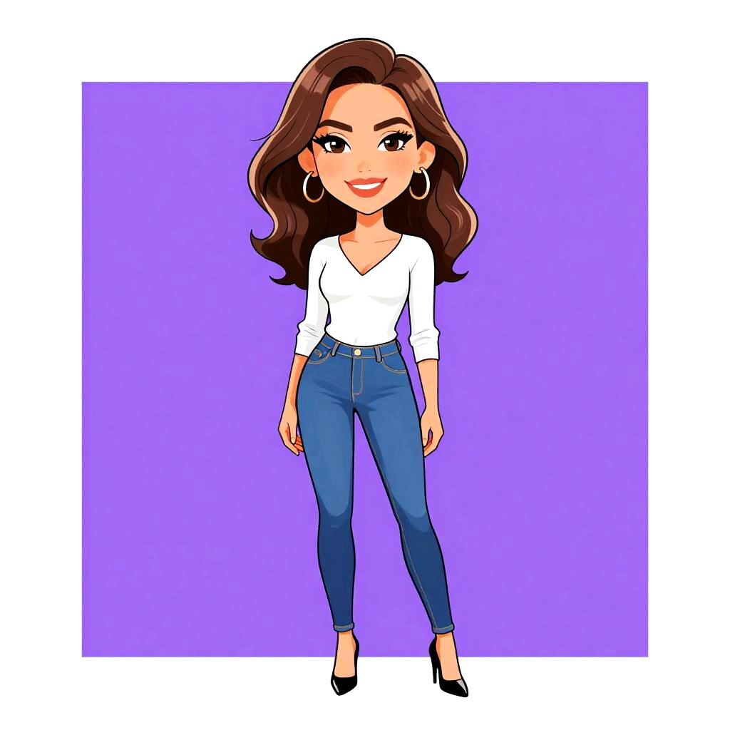 Woman with pretty face and pretty hair. smiling Woman, casual, white V-neck long-sleeve top, slim-fit blue denim jeans, black pointed-toe high heels --sref 1461