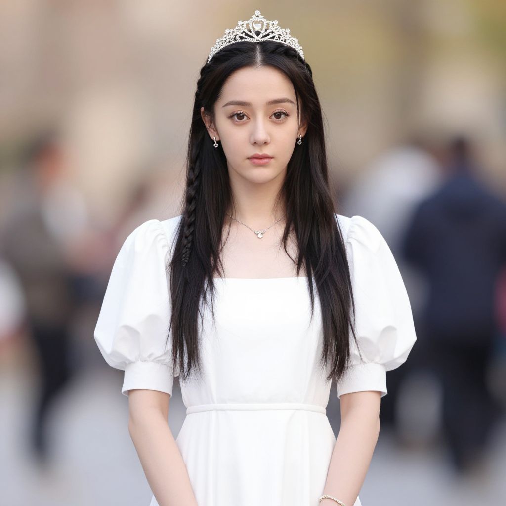 Female wearing a green and gold outfit with a crown on her head and braids in her hair.