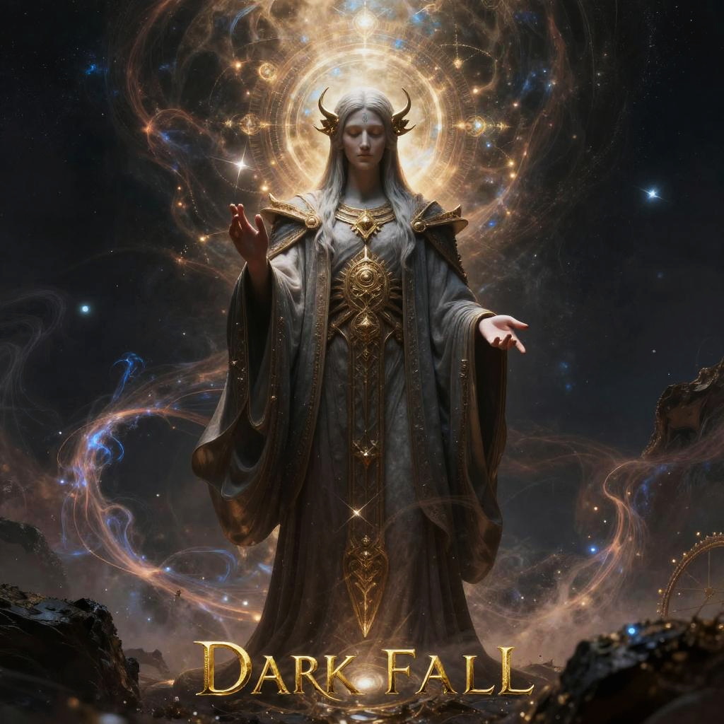 Dark godfall wallpaper featuring celestial sage standing in a ethereal nebula