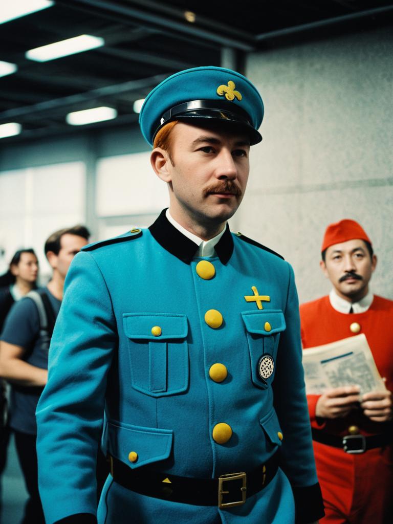 Man in Tintin Costume, photorealistic comic cosplay portrait, cinematic realism