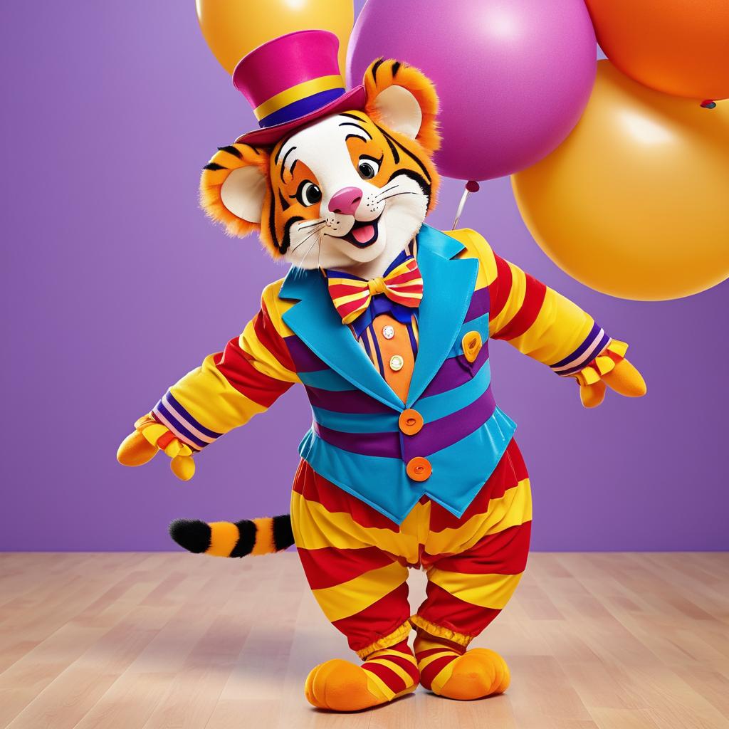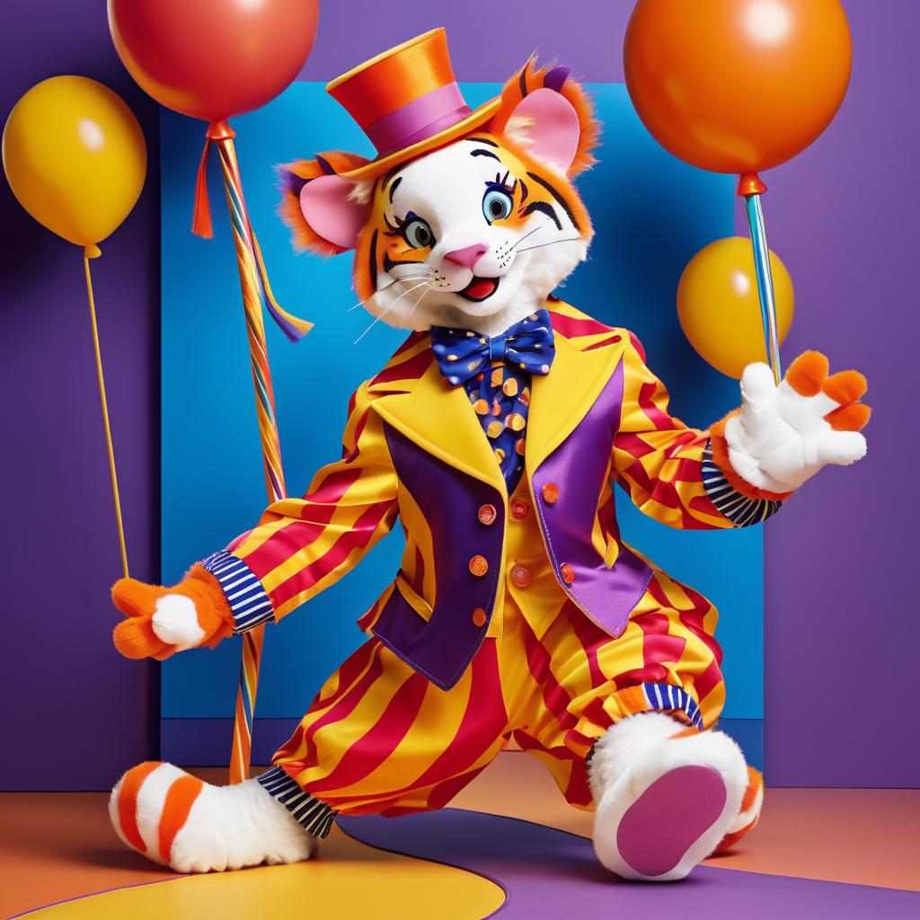 Tigger dressed as a circus performer, styled in a playful and vibrant fashion.