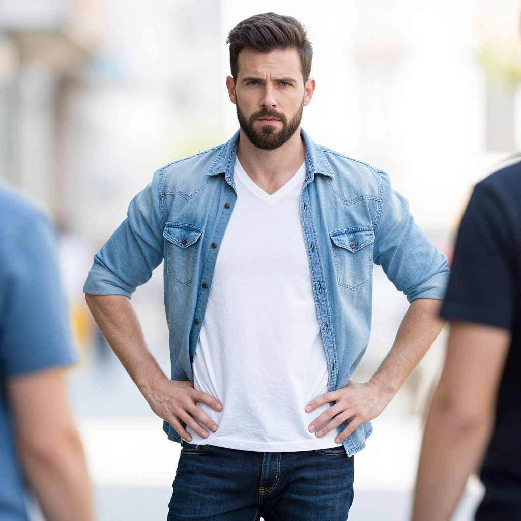 Confident Bearded Man in Denim Outfit