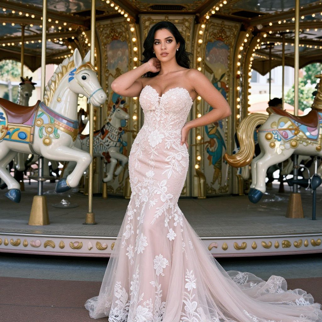 Elegant Romantic Woman in Lace Gown