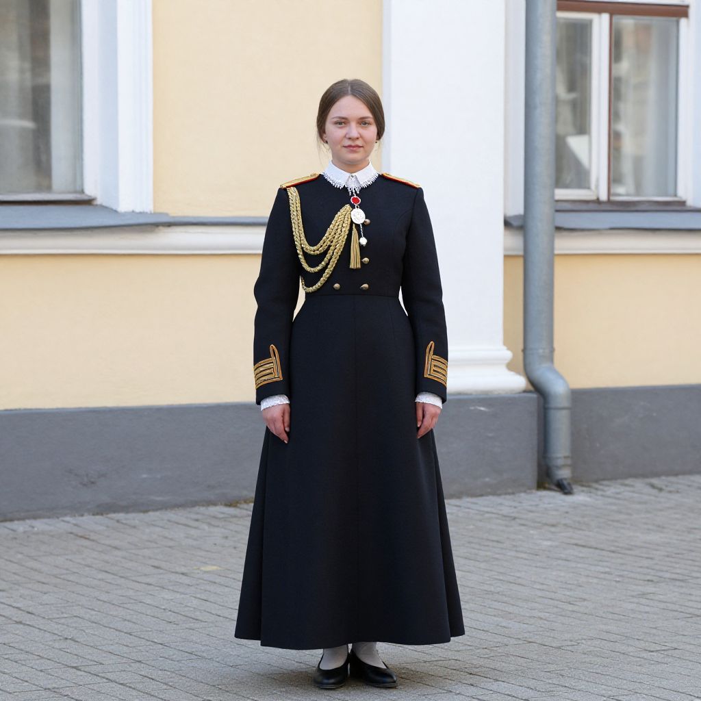 Russian General Costume, woman in traditional clothing standing outside of a building