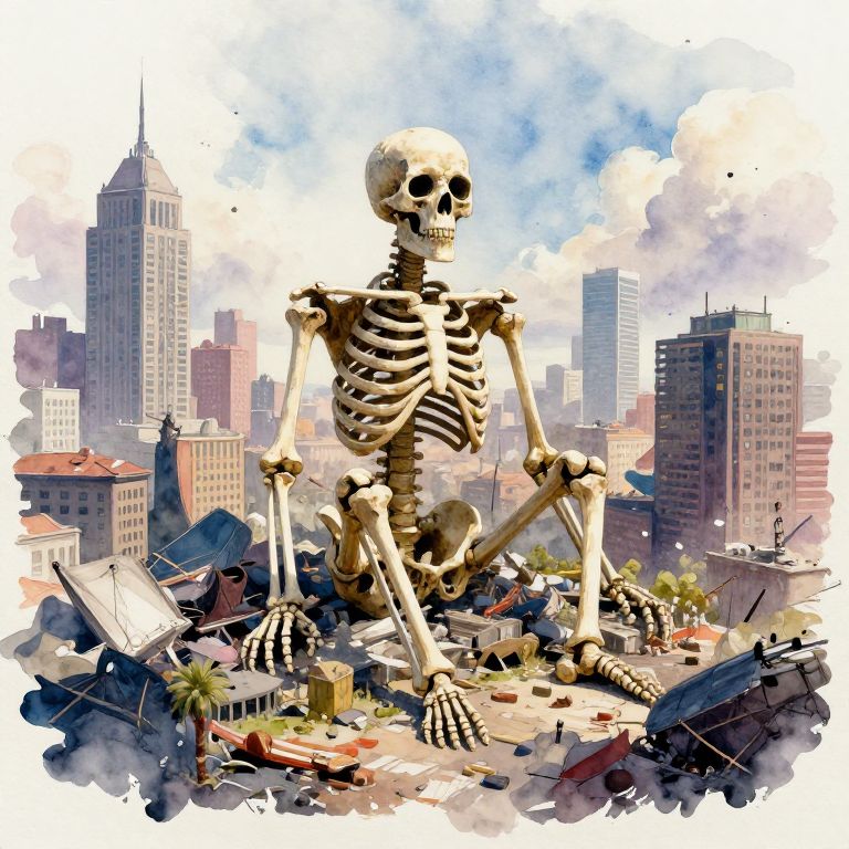 Giant Skeleton in Urban Wasteland
