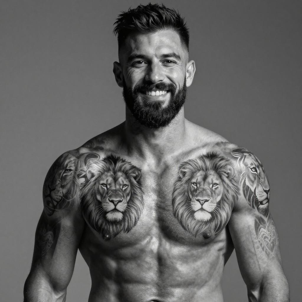 Muscular Bearded Man with Lion Tattoo