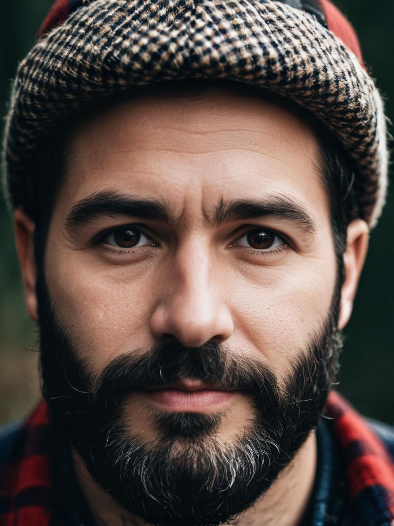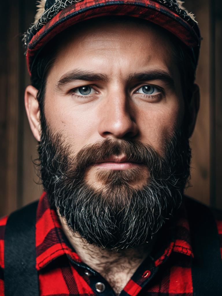 Man in Lumberjack Costume, close-up detailed headshot with beard
