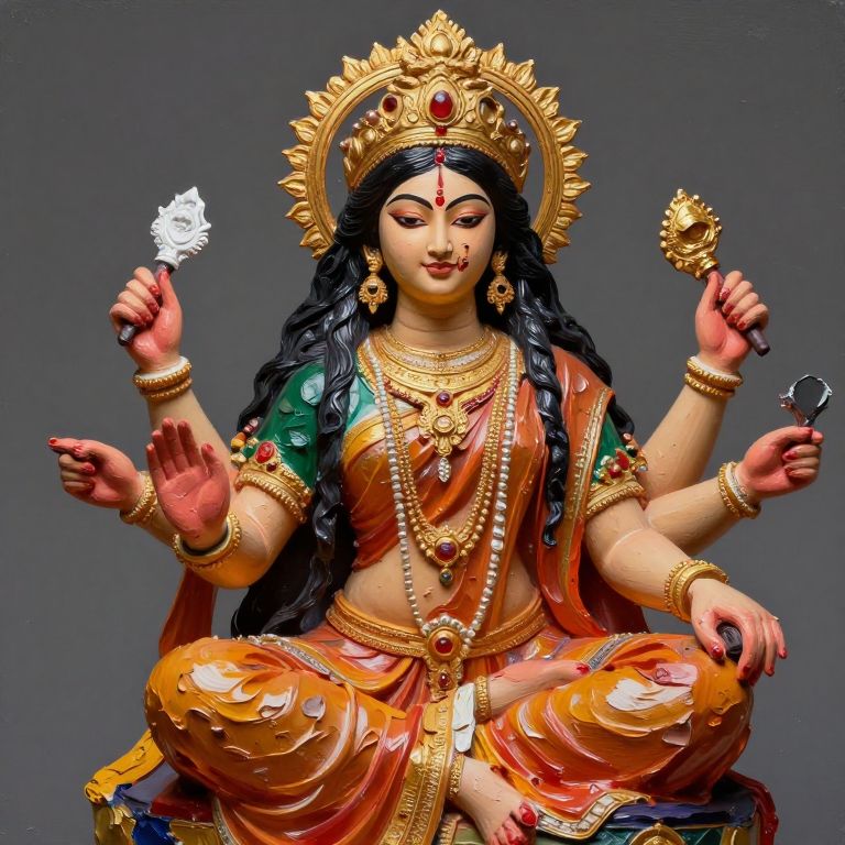 3D Sculpture Gayatri Goddess, ultra realistic, unreal engine, cinematic lighting, oil painting, thick pallet knife strokes,