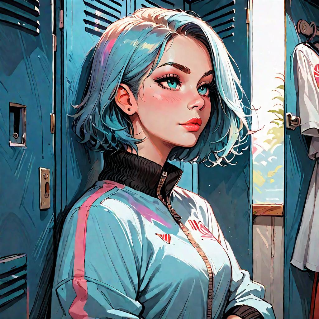 Score_9, score_8, score_7, rating_safe, skinny teen girl, rikujou02, tanlines, in locker room, jacket