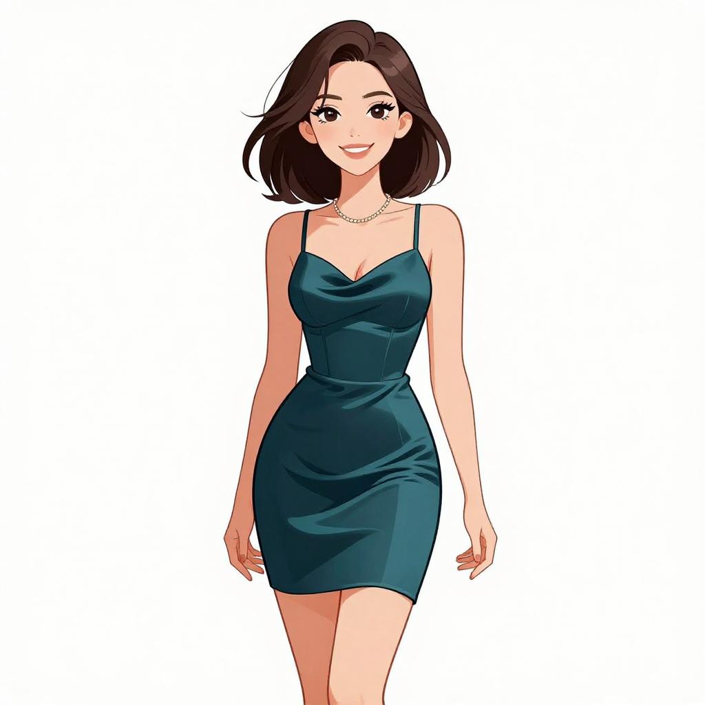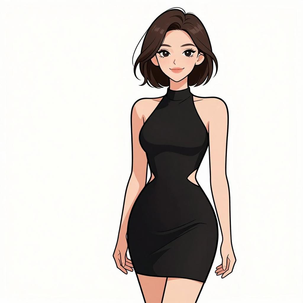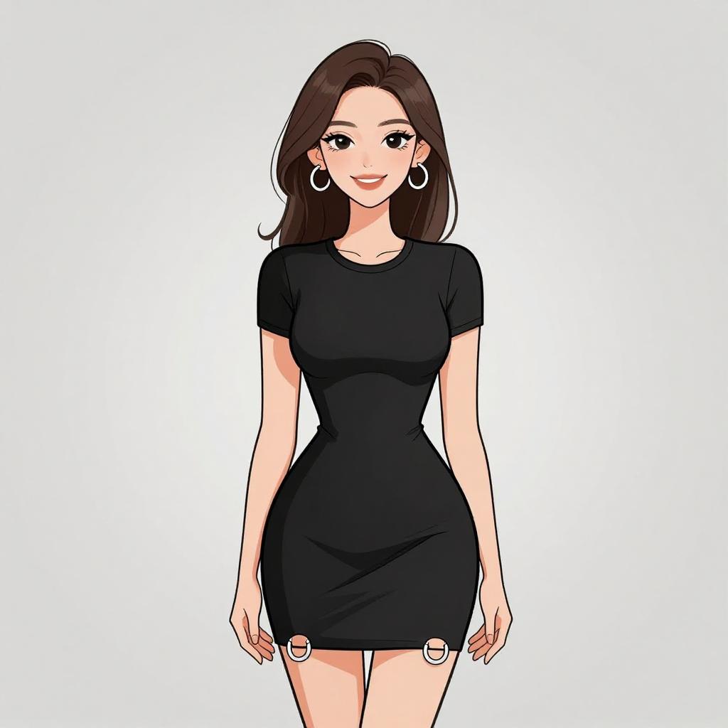 Smiling Woman in Black Mini Dress